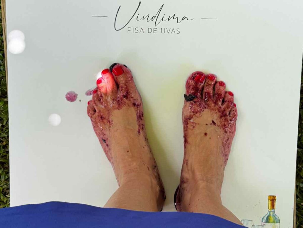 O roteiro inclui taça e chapéu personalizados, participação na tradicional pisa das uvas e uma mesa de aperitivos com cuca, grostoli, frios, pães de fermentação natural e geleias.